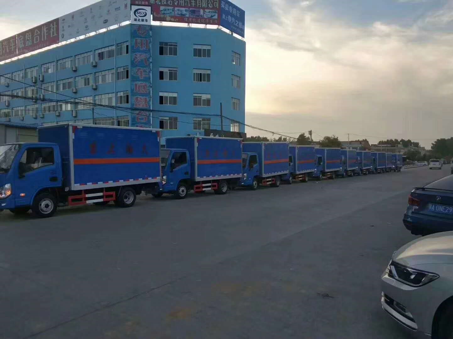 廣東河源周總從事危險(xiǎn)品運(yùn)輸多年,擁有自己的運(yùn)輸公司并運(yùn)營的非常好!因公司需要在程力訂購了32臺(tái)躍進(jìn)易燃?xì)怏w廂式車,目前10臺(tái)已經(jīng)做好。為了不耽誤周總用車,昨日下午公司已安排10臺(tái)躍進(jìn)易燃?xì)怏w廂式車先發(fā)車。易燃?xì)怏w廂式車訂購熱線:13872880150陳經(jīng)理/18372237788楊經(jīng)理。藍(lán)色的車身在夕陽下格外顯眼,愿周總收車愉快,生意興隆!
