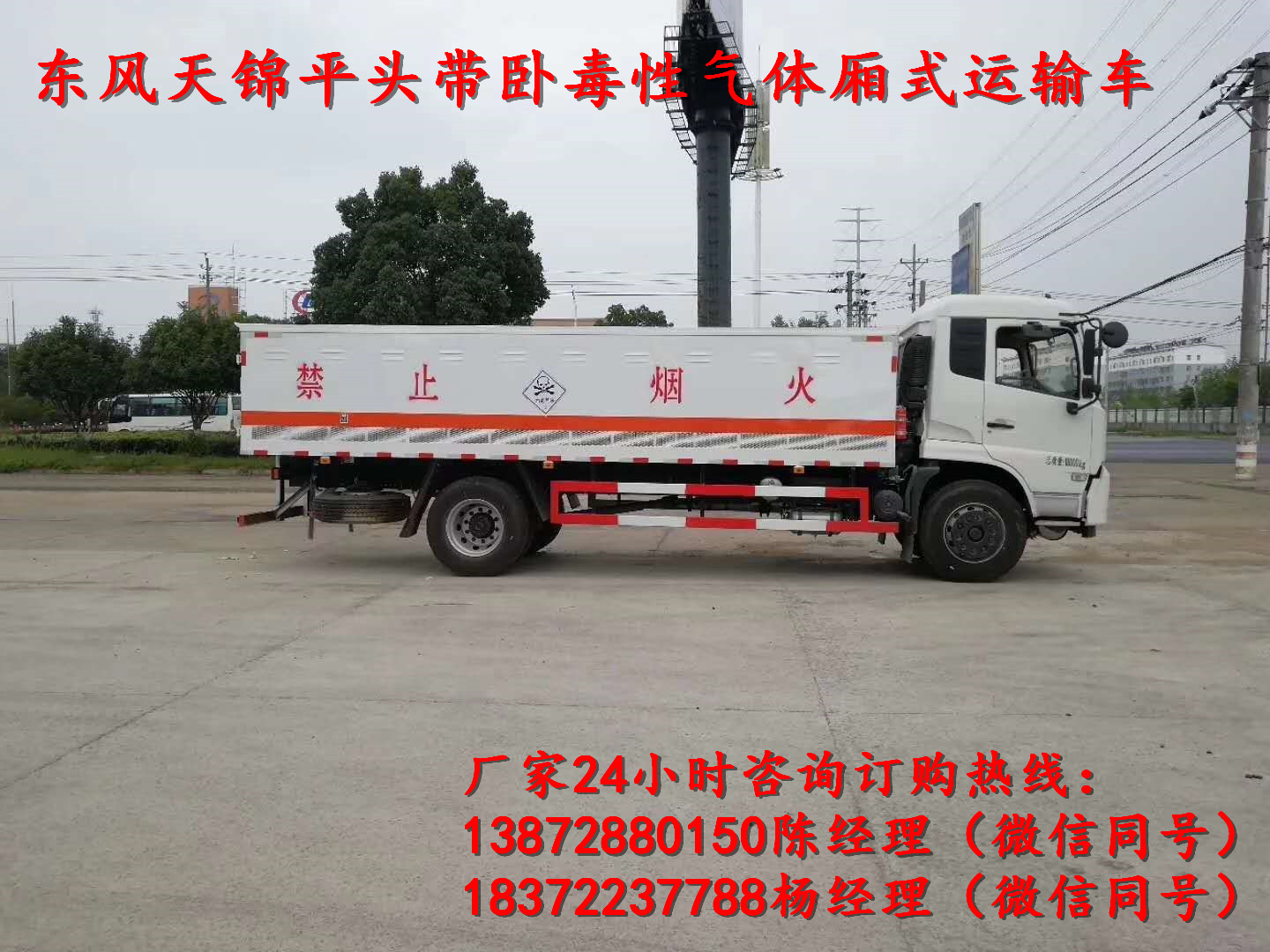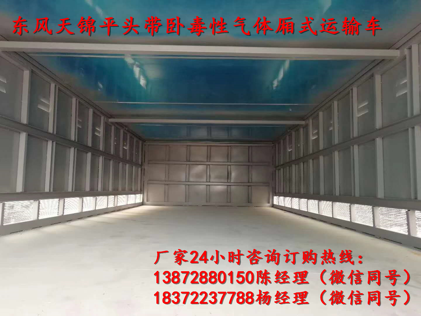 東風天錦毒性氣體廂式運輸車是一款專項運輸有毒氣體-劇毒氣體的特種運輸車輛,主要運輸2類3類液氮、液氮毒性氣體等。該車底盤為東風天錦平頭帶臥底盤,康明斯190馬力6缸機,額載10噸。