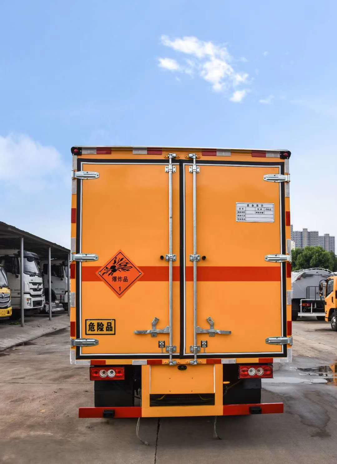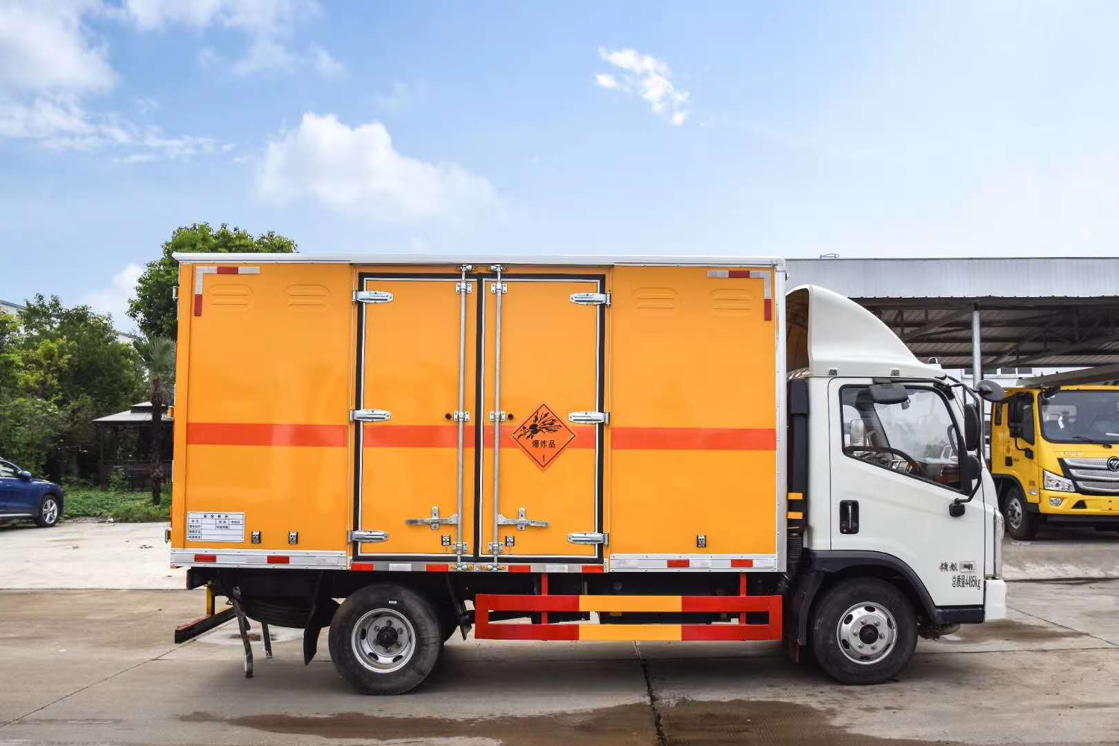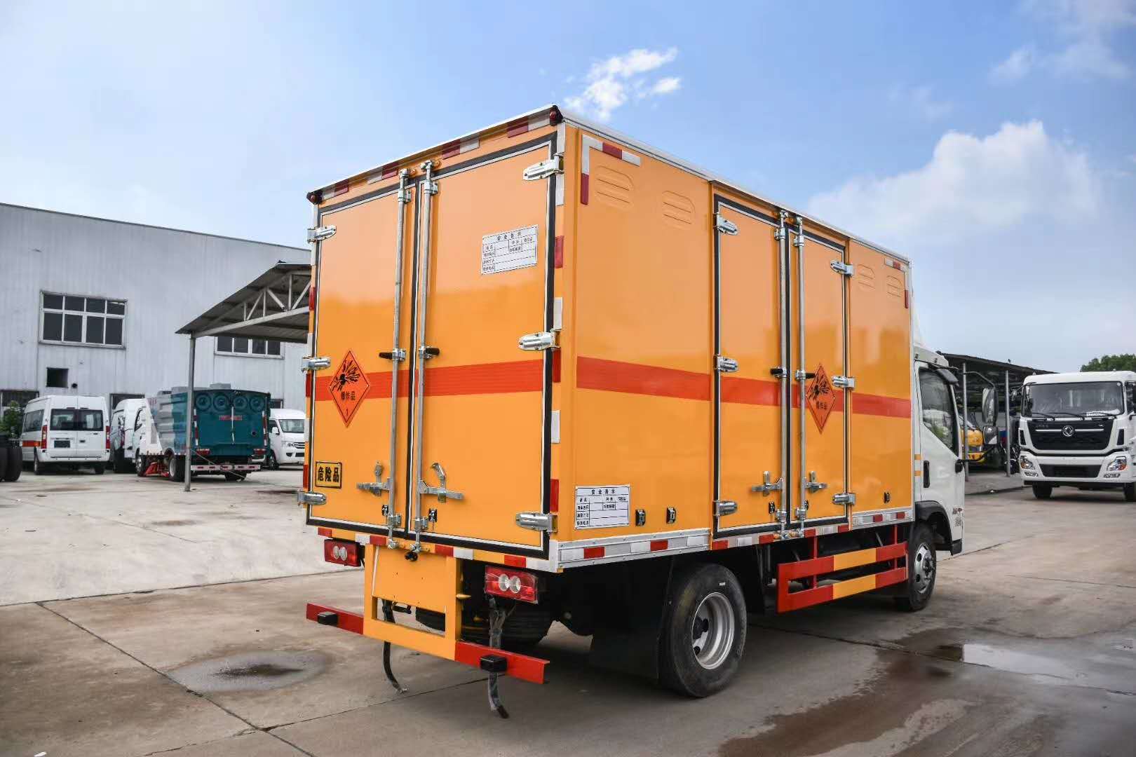 福田時(shí)代國(guó)六藍(lán)牌危險(xiǎn)品車嚴(yán)格按照公告尺寸制作,外板采用1mm厚冷軋板有一次性成型的百葉窗,內(nèi)飾為導(dǎo)電性能良好的鋁板有透氣孔,內(nèi)襯為矩形管骨架牢靠穩(wěn)定,內(nèi)部填充為透氣防潮阻燃的擠塑板,四種材料經(jīng)現(xiàn)代工藝復(fù)合而成,廂體外部上下鋁合金型材包邊,底板和車廂前下部鋪橡膠皮,后門雙開(kāi),右側(cè)中部雙開(kāi)門,內(nèi)部有固定貨物的臥環(huán),車輛外部有靜電帶、滅火器、防火罩,車廂內(nèi)安裝煙霧報(bào)警器和門防盜報(bào)警器,嚴(yán)格按照國(guó)家危險(xiǎn)品相關(guān)法規(guī)張貼