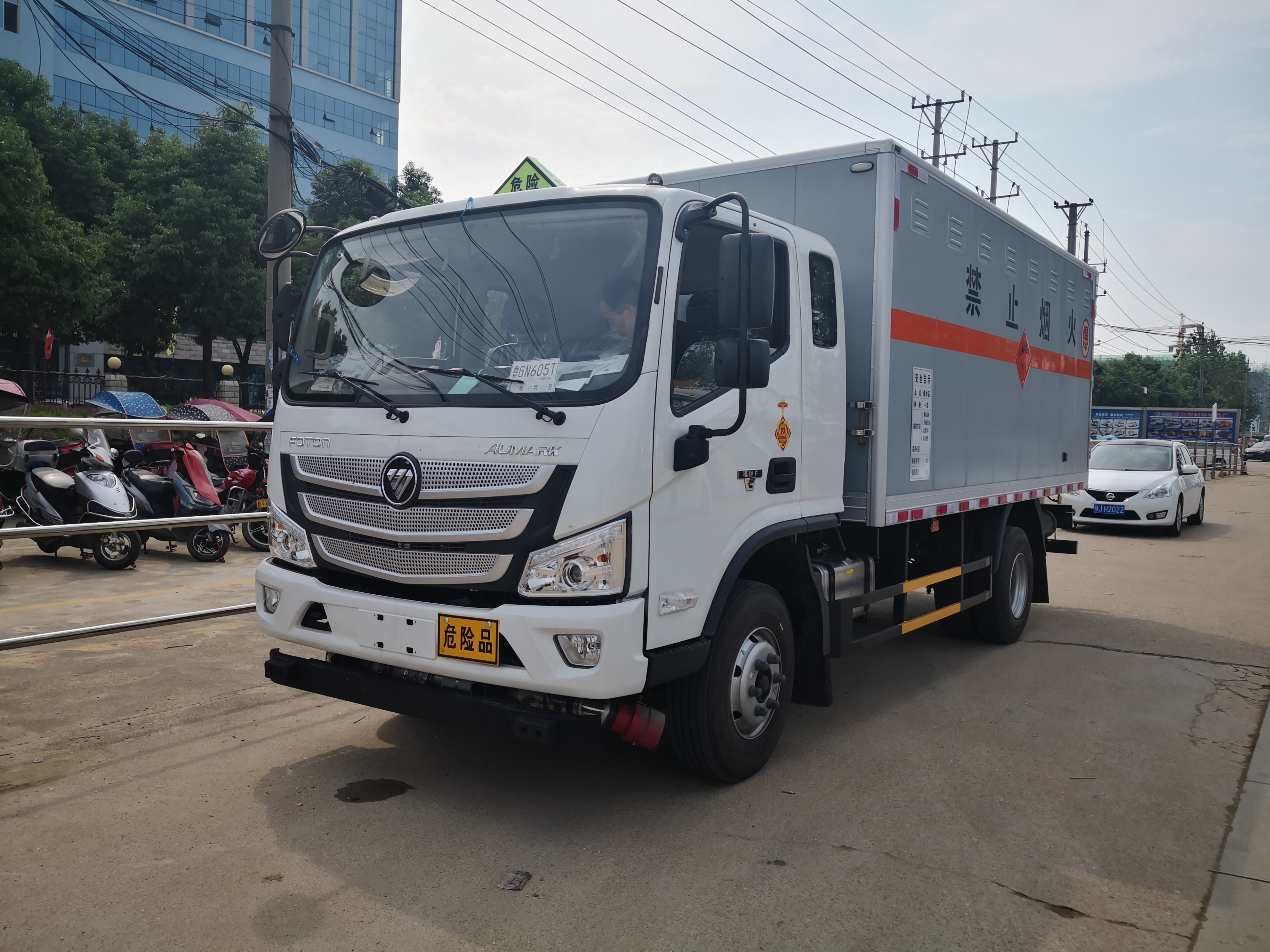 福田歐馬可排半4米7防爆車采用福田歐馬可原廠危貨底盤,排半駕駛室,帶中控鎖、電動門窗,原廠空調,3360mm軸距,采用康明斯156馬力發動機,省油中的神器。該車配置有9.5R17.5 16PR防爆胎,帶安全帶未系提醒,剎車襯片預警提示,符合2020年新規。