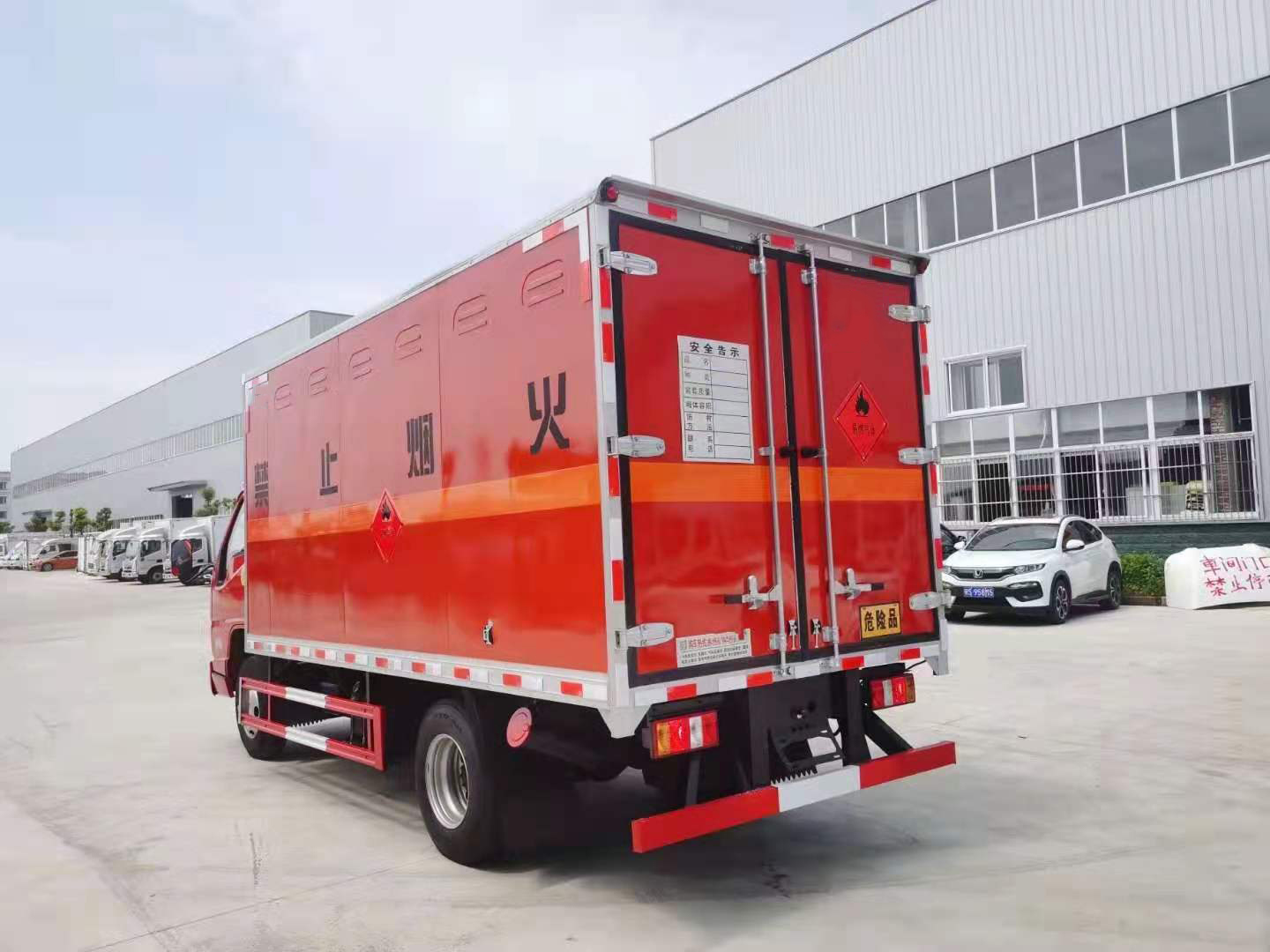 重點是江鈴國六危險品車的廂體也進行了升級,使用全新輕量化技術,采用獨有的“三明治”大板壓制工藝,外蒙皮為定制環保型滾涂板材,免漆環保;內蒙皮選用防靜電鋁板,頂板外蒙皮為整張FRP板材,后門框為不銹鋼材質,使用三元乙丙橡膠門封條以及高檔鍍鋅、不銹鋼五金件,包邊包角采用高檔鋁合金材料或不銹鋼材料,美觀耐用廂體側壁有防雨功能自然通風窗口,廂體內部配有固定拉環,底板鋪設導靜電膠板。門磁報警器、煙霧報警器、導靜電拖地帶等安全配置齊全。