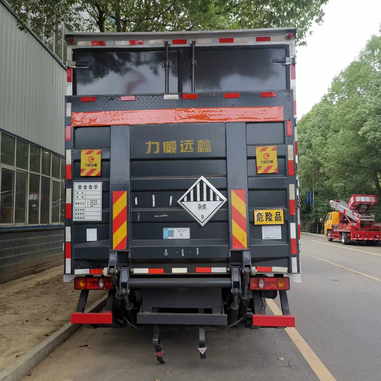 大運(yùn)國六5米1危險(xiǎn)品車采用1.2mm厚冷軋板,內(nèi)襯為矩形管骨架牢靠穩(wěn)定,底板為4mm厚花紋板,箱體帶雙開雙側(cè)門,帶靜電帶、外形尺寸:7230*2420*2830mm,箱體尺寸:5150*2300*2300mm。該車定制的是灰色的箱體,尾部加裝液壓尾板,整車不超重。