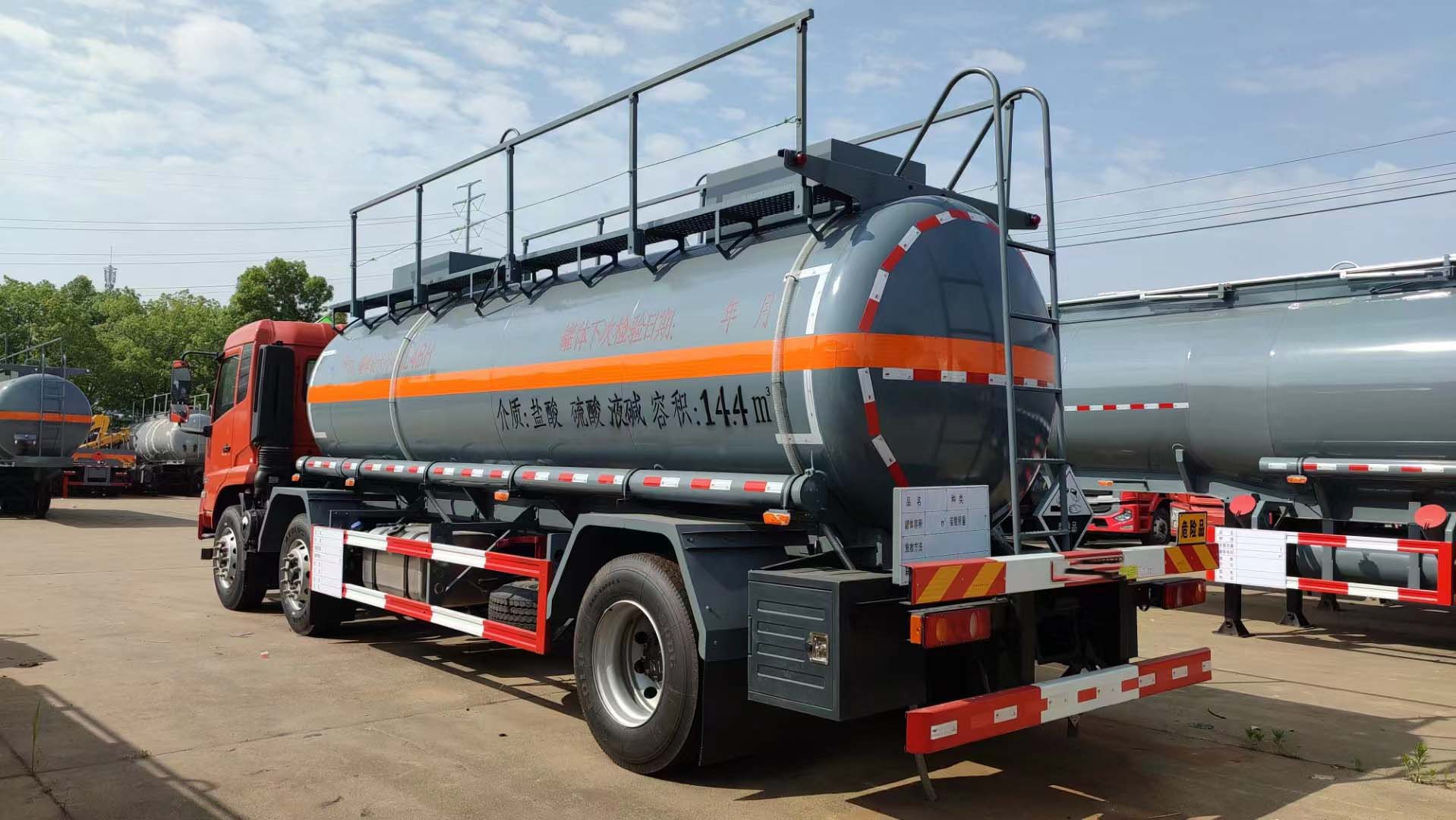 15噸罐式運輸可出鹽酸、硫酸、氫氧化鈉溶液、磷酸溶液、硝酸、乙酸溶液、等8類腐蝕品車輛,選擇哪一款更合適,用習慣天錦的車輛客戶,當然會優先提出采用東風天錦三軸國六腐蝕品罐式運輸車,以下是詳細配置介紹:
