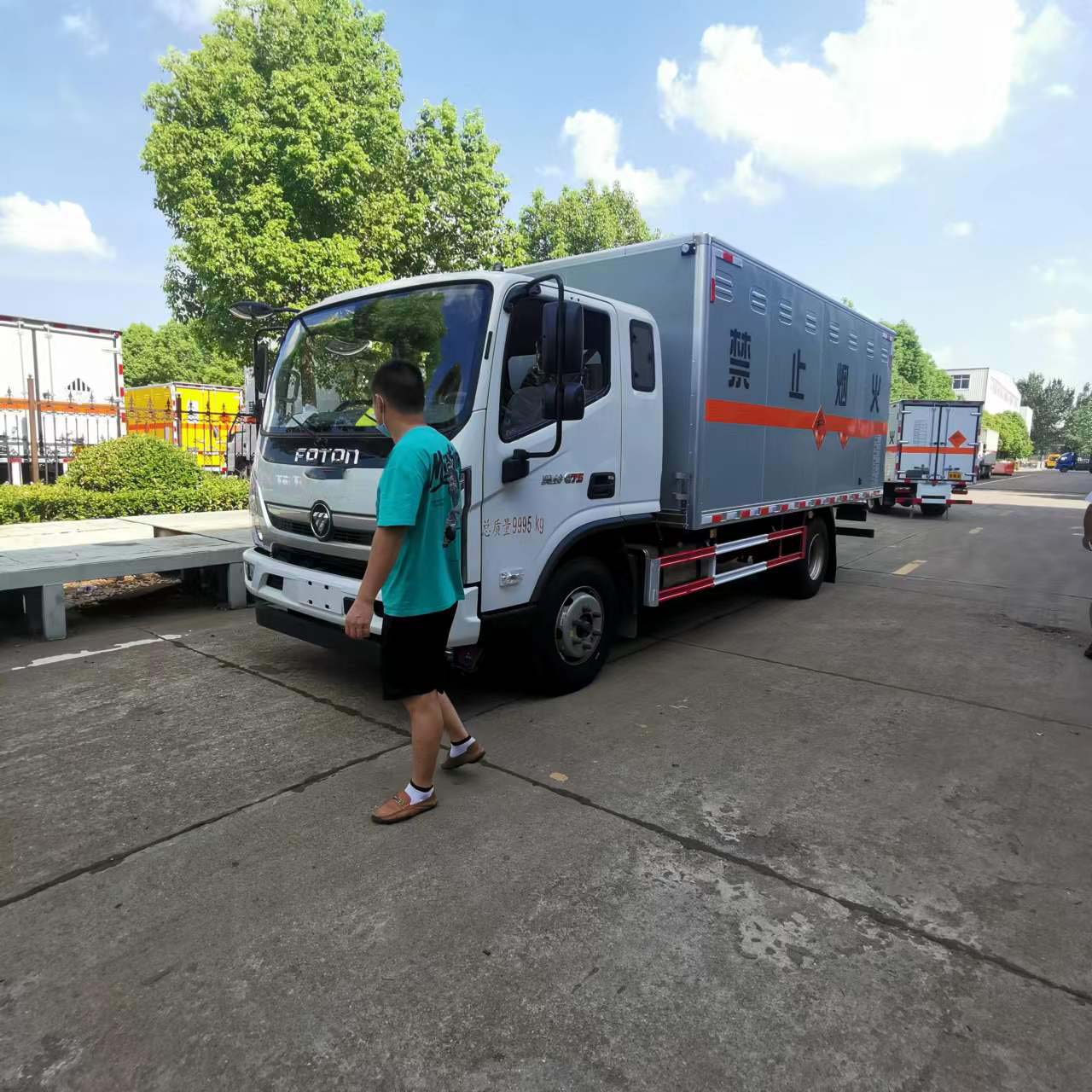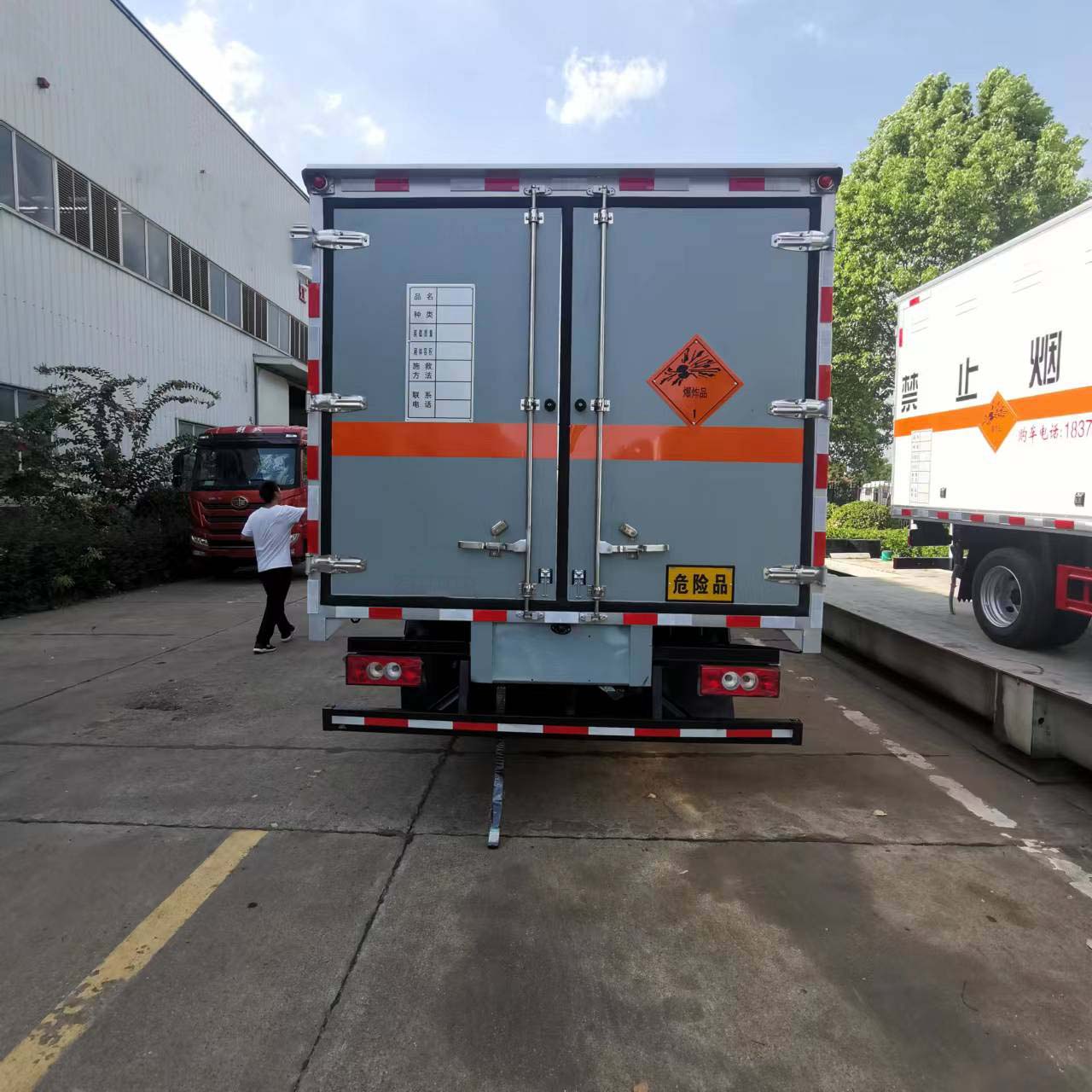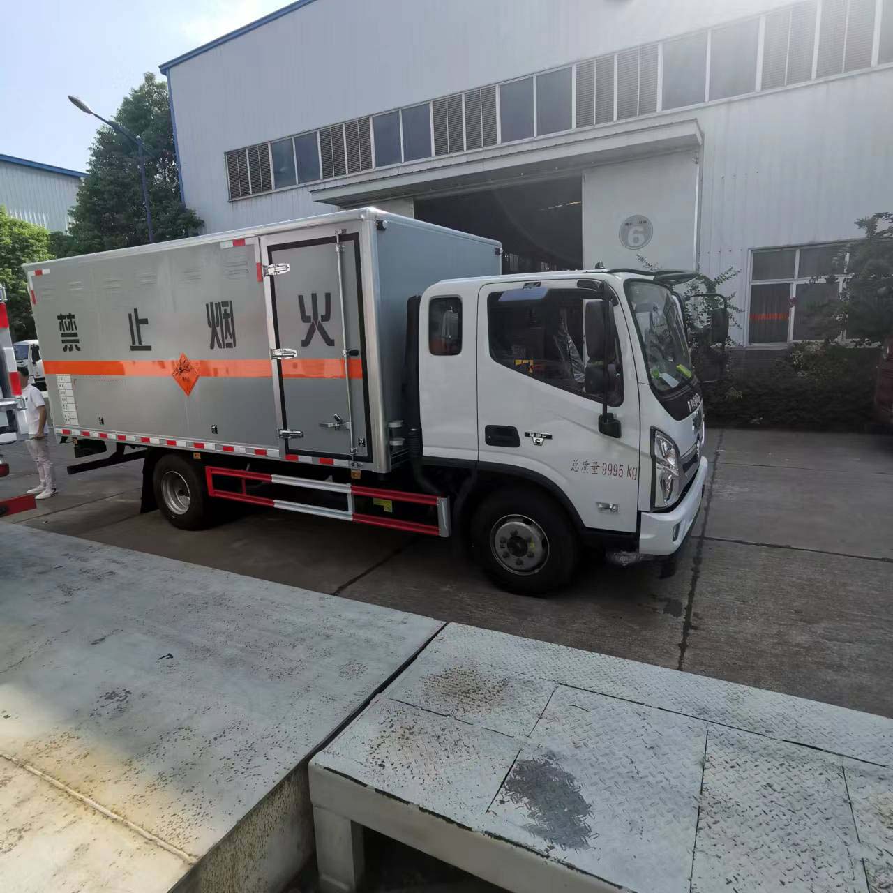 福田國(guó)六排半5噸爆破車(chē)貨箱尺寸4700*2200*2000mm,額載噸位可達(dá)5噸,該車(chē)運(yùn)輸介質(zhì)類(lèi)項(xiàng)號(hào)為:1.1 D,1.1B,1.1G ,1.1C,1.3C,1.4G;運(yùn)送危險(xiǎn)貨物車(chē)輛的類(lèi)型:EX/Ⅲ型車(chē)輛;僅采用前輪盤(pán)式制動(dòng)器,前置排氣管,子午線輪胎,限速裝置的底盤(pán),限速80km/h;轉(zhuǎn)向輪安裝爆胎應(yīng)急防護(hù)裝置。