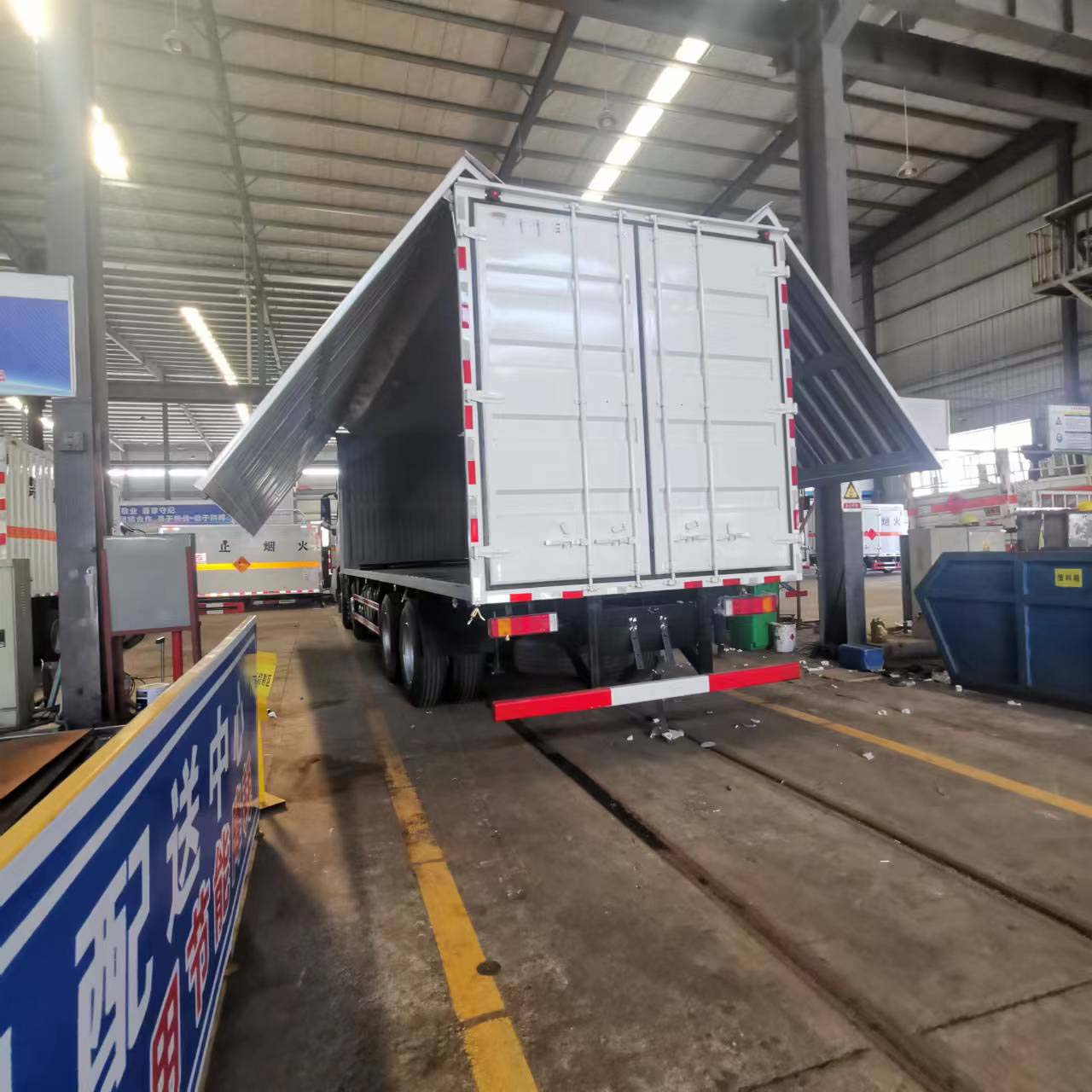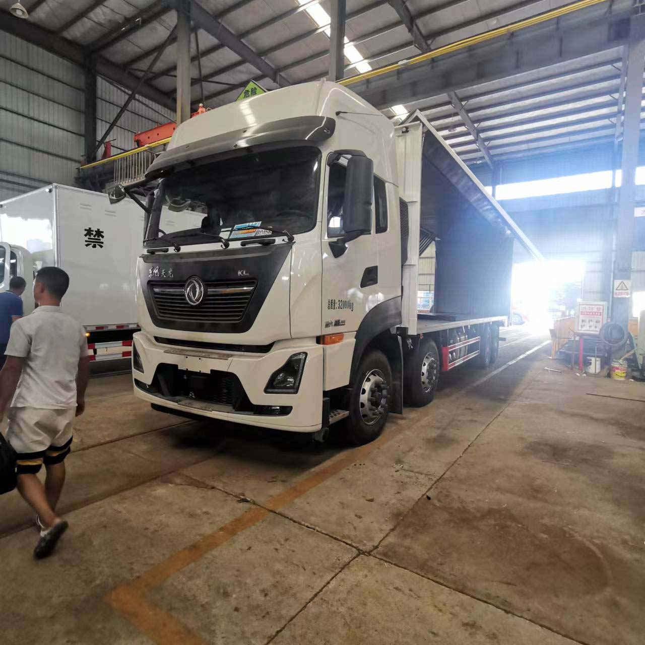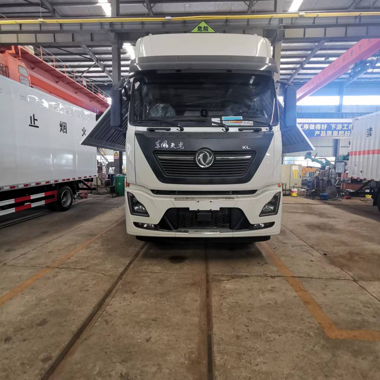 東風(fēng)天龍前四后八國六翼展危險(xiǎn)品車采用的是;穼S玫牡妆P,天龍駕駛室,350馬力發(fā)動(dòng)機(jī),高頂雙臥駕駛室休息更方便,重點(diǎn)是氣囊減震座椅,司機(jī)長途跋涉休息更方便。為了讓司機(jī)駕乘體驗(yàn)更舒適,為客戶設(shè)計(jì)的是帶中控鎖、電動(dòng)門窗、原廠空調(diào)的車型,為了讓車身不超重,客戶定制的是的瓦楞板翼展式箱體,兩邊可完全展開,客戶裝貨可以用叉車裝貨,更方便。重點(diǎn)是瓦楞板結(jié)構(gòu),車箱板輕,舉升起來重力更小。貨箱采用的是9米6長,車廂寬度可達(dá)2米4.裝載噸位可達(dá)19噸,客戶不用擔(dān)心超重問題,又能多拉貨。
