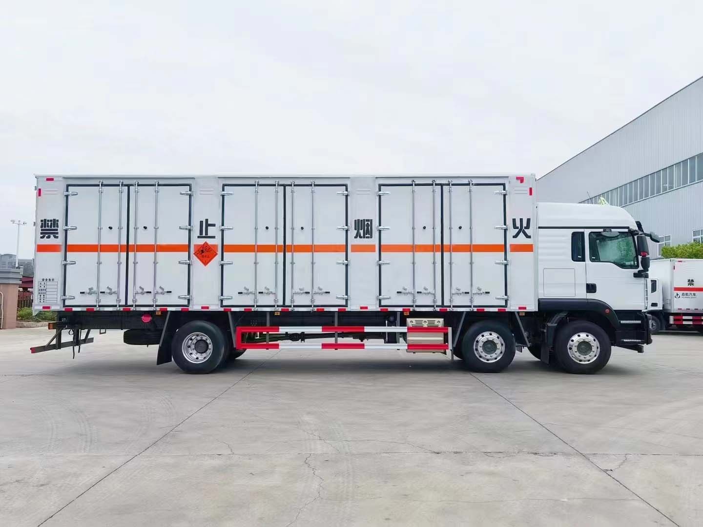 重汽汕德卡三軸高頂雙臥爆破器材運輸車采用的是汕德卡專用危險品車底盤,高頂雙臥駕駛室,德國曼MC07.25-60發動機,全車鋁合金輪轂,300L油箱。箱體尺寸9600*2450*2500mm。該車重點是車型配置高,變速器采用雙中間軸斜齒設計,副箱采用行星減速結構,承載能力強。頭擋速比為12.96,尾擋為超速擋,速比0.83。同時,車輛的1、2橋車輪均為鋁合金輪圈,并匹配盤式制動器,相比鼓剎,盤剎的制動力更加線性,提高了安全性和舒適性。295/80R22.5輪胎;400L油箱;LDWS+FCWS;中國重汽智能通B版;電磁式電源開關;終端排放監控裝置;轉向輪爆胎應急裝置;165AH蓄電池。都說我的草原我的馬,買車就買汕德卡,真正的品質讓您使用車輛更省心!