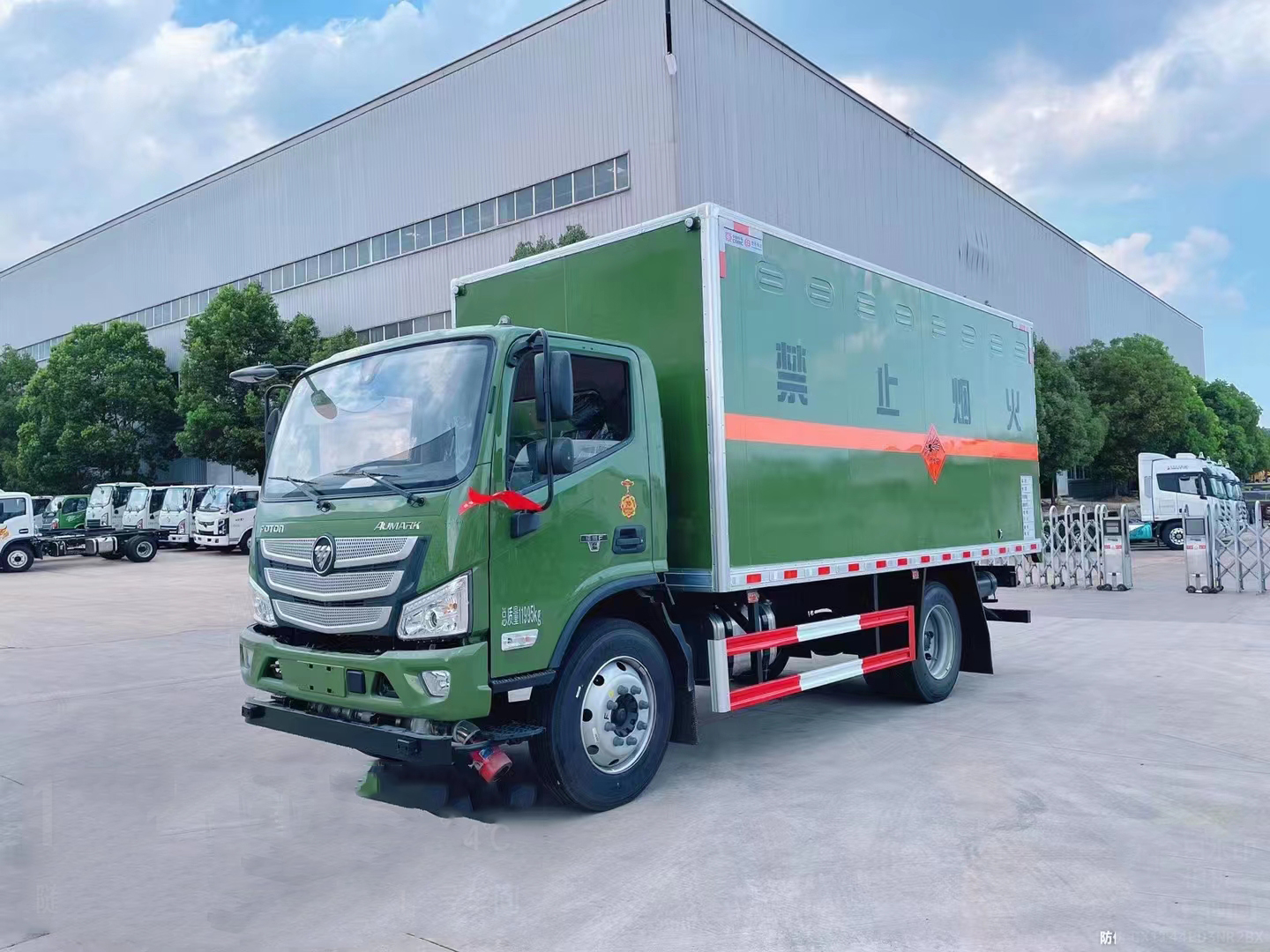 福田歐馬可國六綠色易燃氣體廂式運輸車采用的是12噸級爆破器材運輸車底盤,額載6.8噸。3.8排量156康明斯發動機,5.15米貨箱。購買福田歐馬可綠色國六危險品車優勢在哪里: