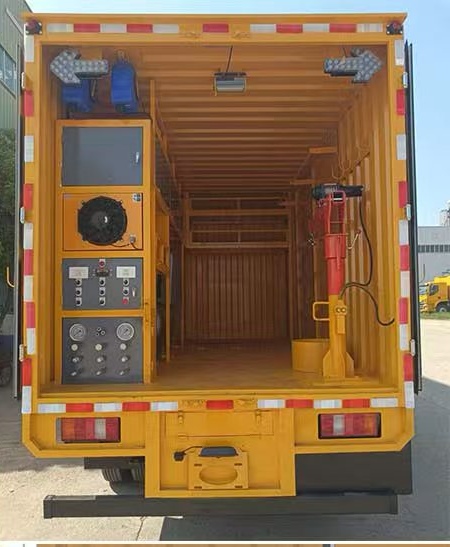 7,其它配置:兩套液壓快速接口,兩臺散熱器,貨箱尾部雙開門,貨箱側(cè)開雙門,箱體內(nèi)頂部兩個照明燈(其中一個為箱內(nèi)照明燈,另一個為箱外工作照明燈),漏電保護裝置,空壓機壓力自動保護,一個15米的自動伸縮氣管盤管器,一個15米的自動伸縮電線盤管器,LED剪頭燈,抽拉式爬梯。