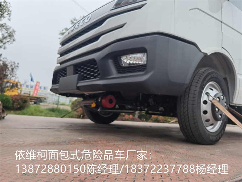 依維柯面包式易燃液體廂式車選用的是危險品專用底盤,中頂單排貨車前手動門側拉門。匹配的是后雙胎底盤,承載力更強。選用的是發動機SOFIM8140.47Z6發動機(索菲姆122馬力,動力強勁)。根據藍牌車輛的要求,2.5排量發動機。2800mm軸距,輪胎195/75R16LT 10PR,后橋速比4.222,后7片板簧,匹配的額是左右側電動窗。