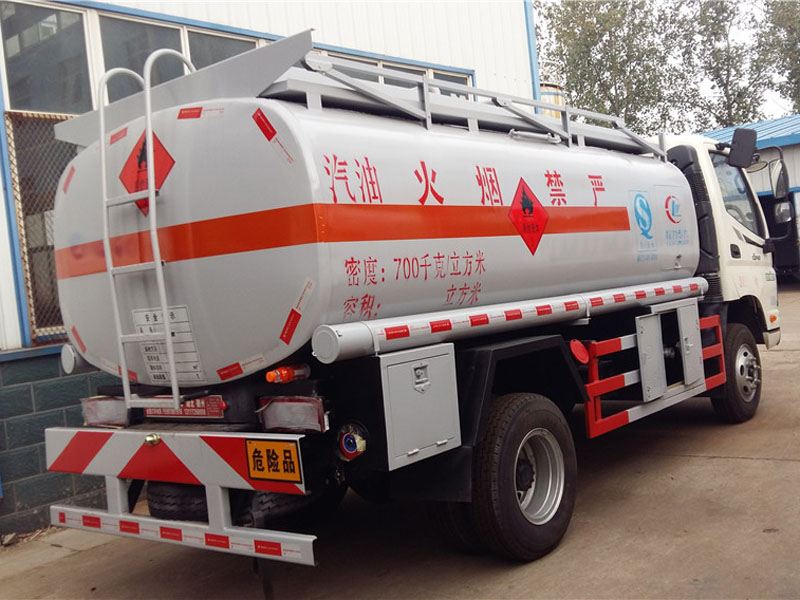 上裝配置:罐體采用5mm厚碳鋼制作而成壓封頭,折疊護欄,泵進泵出,海底閥,油氣回收,下裝油口,歐標罐口。罐體外形尺寸 (長×長軸×短軸) (mm):4800×2030×1460。加油機裝置可裝在車架左側或右側,安裝位置前后可變化。